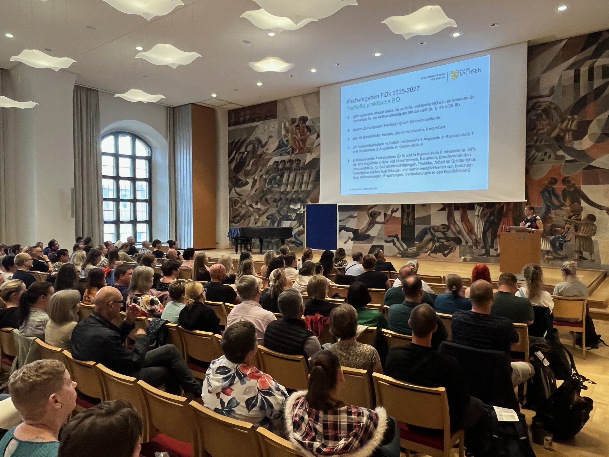 An den Input zum Start der Veranstaltung schlossen sich dieses Jahr zwei intensive Workshopphasen an. Thematisch griffen diese letztlich die Schwerpunkte der Fachvorgaben auf - von Umsetzungsoptionen zum Kennenlernen der 16 Berufsfelder, über erfolgreiche Netzwerkarbeit zur Einbindung der regionalen Unternehmen, BO mit KI, Beratungsansätze vor dem Hintergrund psychischer Probleme bis hin zur Konzeptionierung von praxisnahen, BO-bezogenen Unterrichtseinheiten mit und ohne Beteiligung externer Praxispartner.